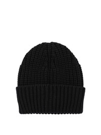 Appliquéd ribbed wool and cashmere-blend beanie Black