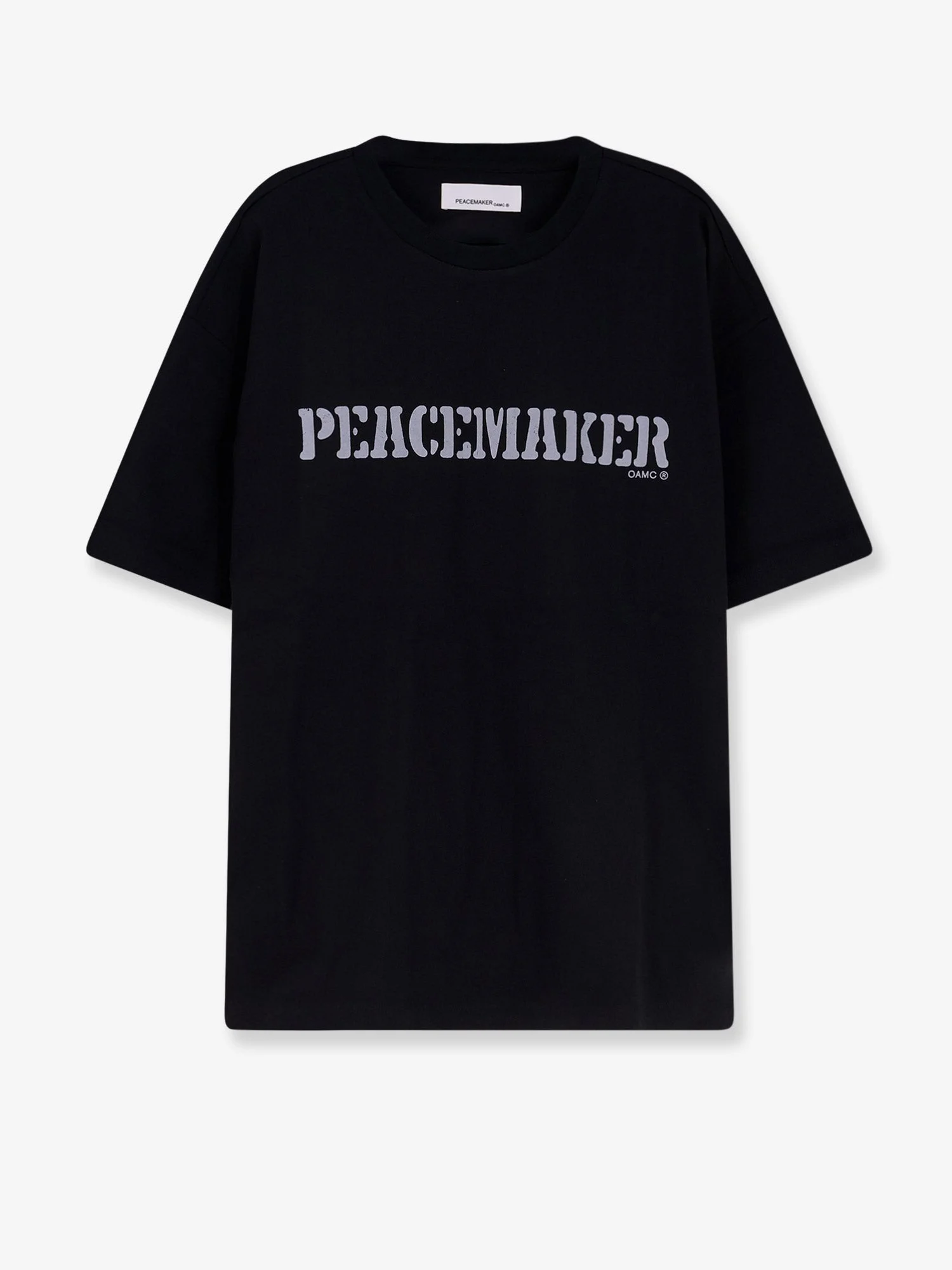 Brand: OAMC PEACEMAKER Product reference: PCM2OT02MJE00299 Color reference: 99 Color: Black Gender: Man Category: T-Shirts and Top Made in: CINA Info: Crew-neck Short sleeves Lettering logo on the front Flowerred print on the back Ribbed profiles 100% Cotton SKU: PCM2OT02MJE0029999 Why Shop With Us · 100% Authenticity Guaranteed · Brand-New, Unworn Items Only · Original Retail Packaging Included · Fast, Reliable Shipping · Excellent Customer Service