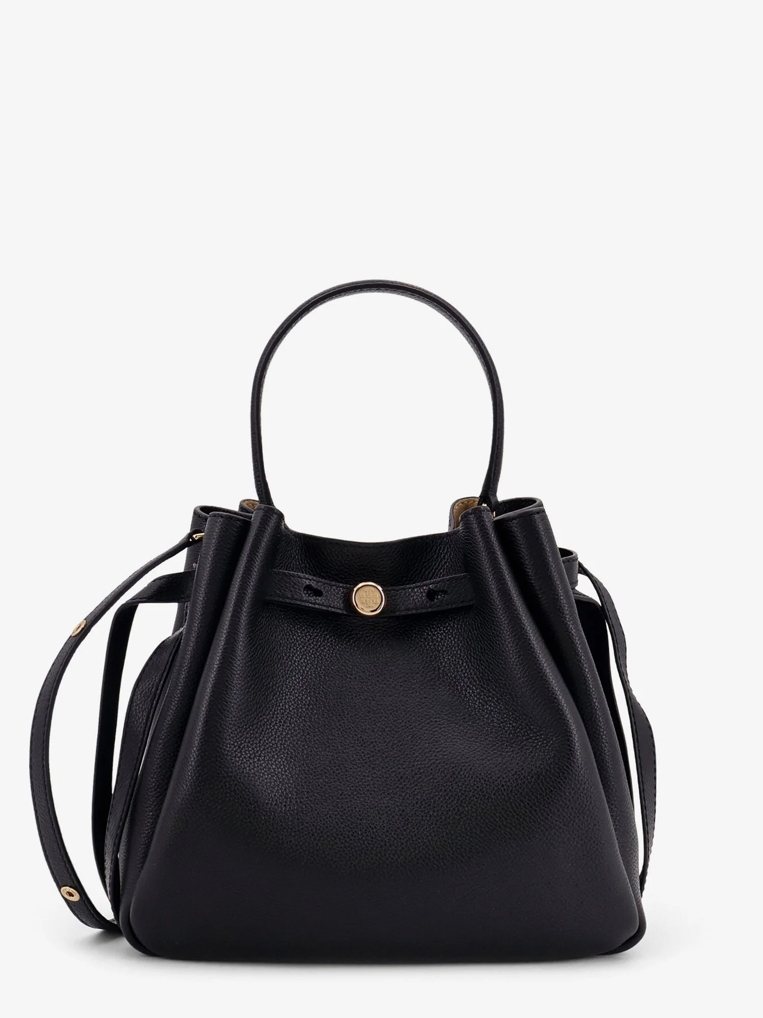 Brand: TORY BURCH Product reference: 166982 Color reference: 001 Color: Black Gender: Woman Category: Bucket Bags Made in: ITALIA Info: Magnetic button closure and adjustable strap with logo button Leather handle Removable and adjustable leather shoulder strap One internal flat pocket Leather Lining: suede W: 22 cm x H: 21.5 cm x D: 9.5 cm SKU: 166982001 Why Shop With Us · 100% Authenticity Guaranteed · Brand-New, Unworn Items Only · Original Retail Packaging Included · Fast, Reliable Shipping · Excellent Customer Service
