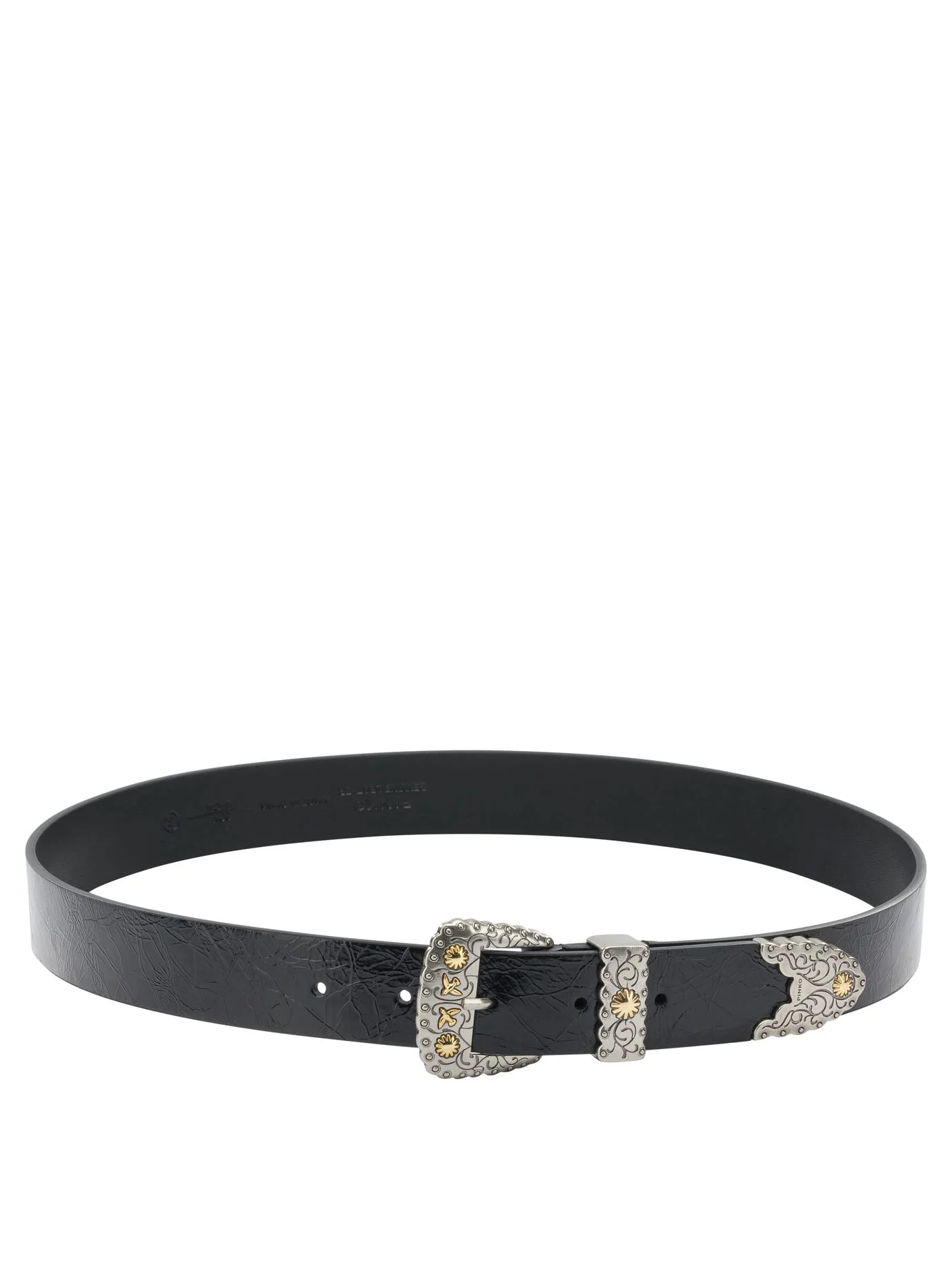 SHINY LEATHER BELT WITH METALLIC FINISHES, 3 CM
