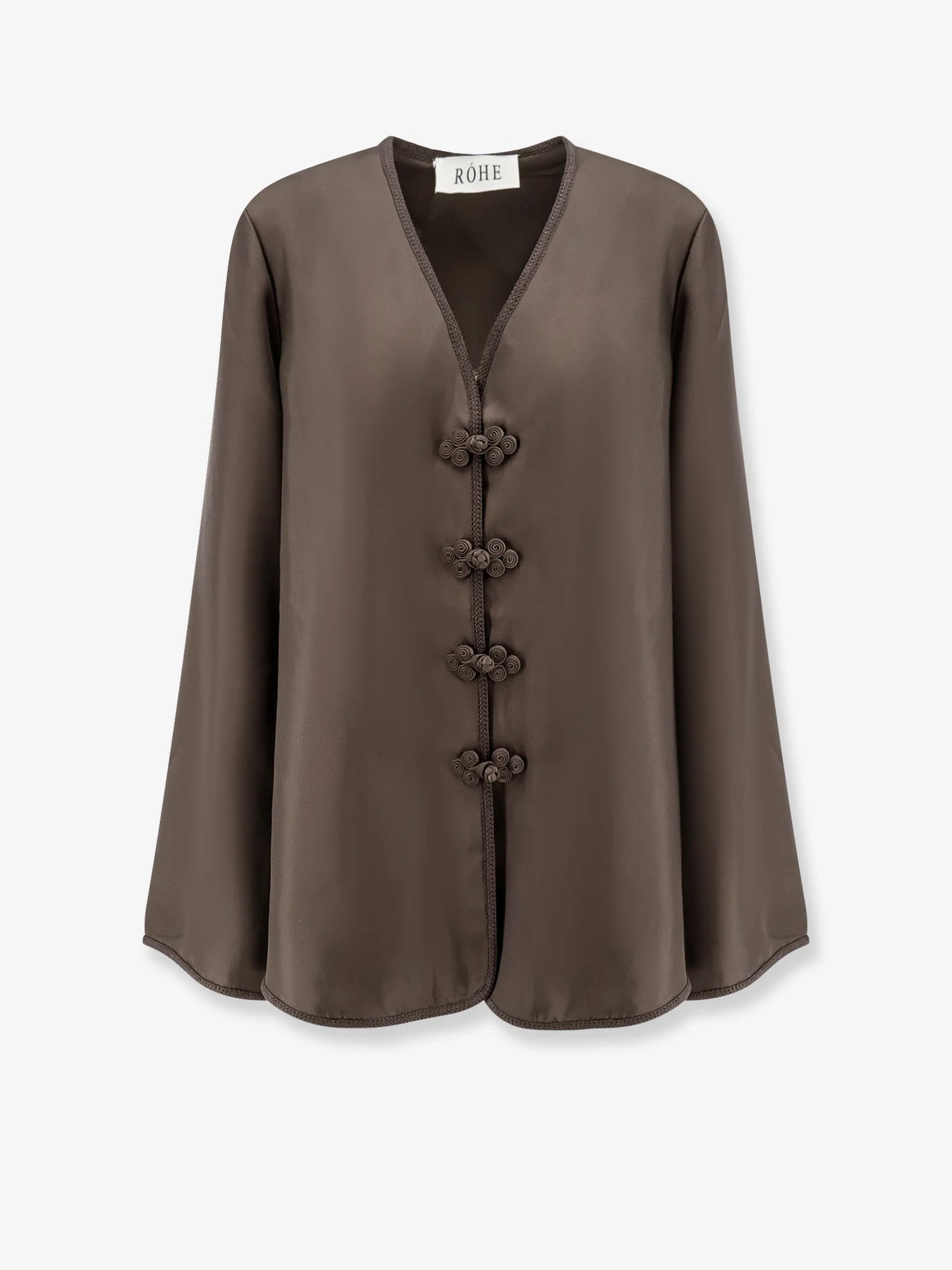 Brand: ROHE Product reference: 41920128 Color reference: 264 Color: Brown Gender: Woman Category: T-Shirts and Top Made in: CINA Size Info: FR sizing. Info: V-neck Fabric frog closure Long sleeves Regular fit 100% Silk SKU: 41920128264 Why Shop With Us · 100% Authenticity Guaranteed · Brand-New, Unworn Items Only · Original Retail Packaging Included · Fast, Reliable Shipping · Excellent Customer Service