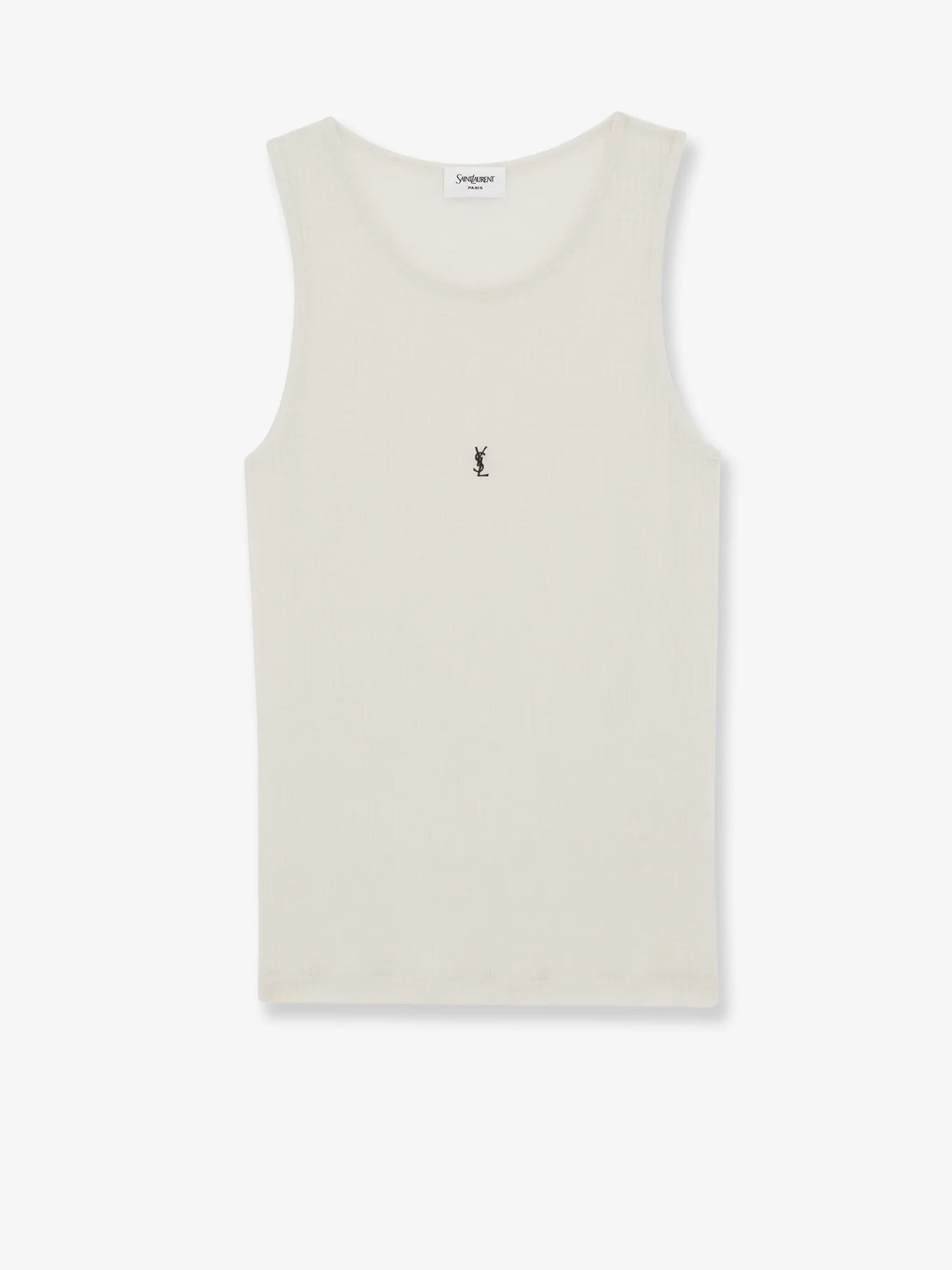 Brand: SAINT LAURENT Product reference: 823603 Color reference: Y37EC9469 Color: Beige Gender: Woman Category: T-Shirts and Top Made in: ITALIA Info: Crewneck Sleeveless Embroidered Cassandre logo Ribbed knit Made in Italy 100% Cotton SKU: 823603Y37EC9469 Why Shop With Us · 100% Authenticity Guaranteed · Brand-New, Unworn Items Only · Original Retail Packaging Included · Fast, Reliable Shipping · Excellent Customer Service