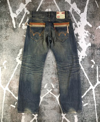 This is used item, please don't expected it to be like "new" or in "pristine" condition, Thank You. Measurements: Waist – Size 32 Manual 34 inches Front Rise - 10 inches Hips - 44 inches Thigh - 24 inches Leg opening – 17 inches Inseam – 33 inches Waist : From the top button to the back belt loop / doubled Rise : From the crotch seam to the top of the waistband Hips: From edge to edge at the base of the zipper / doubled Thigh : From the crotch across to the outside of the leg / doubled Leg opening : From seam to seam / doubled Front Rise : From the crotch seam to the top of the waistband Inseam : From the crotch down the inner seam to the hem ***All measurements are taken when the jeans are laying flat Ship with DHL Express or Fedex ( 5-8 days to arrive depends the locations ) TRACKING NUMBER WILL BE GIVEN AFTER POSTAGE Looking for serious buyer only, Thanks for view and have a nice day!