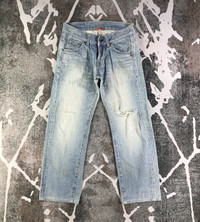 This is used item, please don't expected it to be like "new" or in "pristine" condition, Thank You. Measurements: Waist – Size 30 Manual 32 inches Front Rise - 9.5 inches Hips - 43 inches Thigh - 22 inches Leg opening – 17 inches Inseam – 29 inches Waist : From the top button to the back belt loop / doubled Rise : From the crotch seam to the top of the waistband Hips: From edge to edge at the base of the zipper / doubled Thigh : From the crotch across to the outside of the leg / doubled Leg opening : From seam to seam / doubled Front Rise : From the crotch seam to the top of the waistband Inseam : From the crotch down the inner seam to the hem ***All measurements are taken when the jeans are laying flat Ship with DHL Express or Fedex ( 5-8 days to arrive depends the locations ) TRACKING NUMBER WILL BE GIVEN AFTER POSTAGE Looking for serious buyer only, Thanks for view and have a nice day!