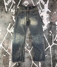 This is used item, please don't expected it to be like "new" or in "pristine" condition, Thank You. Measurements: Waist – 29 inches Front Rise - 8.5 inches Hips - 38 inches Thigh - 21 inches Leg opening – 17 inches Inseam – 31.5 inches Waist : From the top button to the back belt loop / doubled Rise : From the crotch seam to the top of the waistband Hips: From edge to edge at the base of the zipper / doubled Thigh : From the crotch across to the outside of the leg / doubled Leg opening : From seam to seam / doubled Front Rise : From the crotch seam to the top of the waistband Inseam : From the crotch down the inner seam to the hem ***All measurements are taken when the jeans are laying flat Ship with DHL Express ( 5-8 days to arrive depends the locations ) TRACKING NUMBER WILL BE GIVEN AFTER POSTAGE Looking for serious buyer only, Thanks for view and have a nice day!