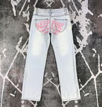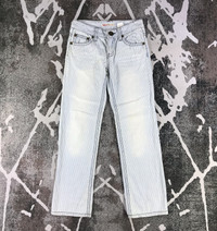 This is used item, please don't expected it to be like "new" or in "pristine" condition, Thank You. Measurements: Waist – 28 inches Front Rise - 8 inches Hips - 35 inches Thigh - 20 inches Leg opening – 15 inches Inseam – 30 inches Waist : From the top button to the back belt loop / doubled Rise : From the crotch seam to the top of the waistband Hips: From edge to edge at the base of the zipper / doubled Thigh : From the crotch across to the outside of the leg / doubled Leg opening : From seam to seam / doubled Front Rise : From the crotch seam to the top of the waistband Inseam : From the crotch down the inner seam to the hem ***All measurements are taken when the jeans are laying flat Ship with DHL Express ( 5-8 days to arrive depends the locations ) TRACKING NUMBER WILL BE GIVEN AFTER POSTAGE Looking for serious buyer only, Thanks for view and have a nice day!