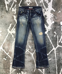 This is used item, please don't expected it to be like "new" or in "pristine" condition, Thank You. Measurements: Waist – 32 inches Front Rise - 9 inches Hips - 39 inches Thigh - 21 inches Leg opening – 19 inches Inseam – 32.5 inches Waist : From the top button to the back belt loop / doubled Rise : From the crotch seam to the top of the waistband Hips: From edge to edge at the base of the zipper / doubled Thigh : From the crotch across to the outside of the leg / doubled Leg opening : From seam to seam / doubled Front Rise : From the crotch seam to the top of the waistband Inseam : From the crotch down the inner seam to the hem ***All measurements are taken when the jeans are laying flat Ship with DHL Express ( 5-8 days to arrive depends the locations ) TRACKING NUMBER WILL BE GIVEN AFTER POSTAGE Looking for serious buyer only, Thanks for view and have a nice day!