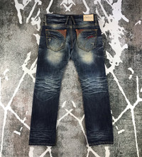 This is used item, please don't expected it to be like "new" or in "pristine" condition, Thank You. Measurements: Waist – 33 inches Front Rise - 8 inches Hips - 41 inches Thigh - 22 inches Leg opening – 15 inches Inseam – 31.5 inches Waist : From the top button to the back belt loop / doubled Rise : From the crotch seam to the top of the waistband Hips: From edge to edge at the base of the zipper / doubled Thigh : From the crotch across to the outside of the leg / doubled Leg opening : From seam to seam / doubled Front Rise : From the crotch seam to the top of the waistband Inseam : From the crotch down the inner seam to the hem ***All measurements are taken when the jeans are laying flat Ship with DHL Express ( 5-8 days to arrive depends the locations ) TRACKING NUMBER WILL BE GIVEN AFTER POSTAGE Looking for serious buyer only, Thanks for view and have a nice day!