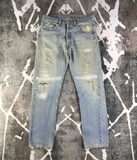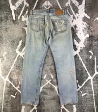 This is used item, please don't expected it to be like "new" or in "pristine" condition, Thank You. Measurements: Waist – Size 33 Shrink 32 inches Front Rise - 11.5 inches Hips - 43 inches Thigh - 23 inches Leg opening – 14 inches Inseam – 30 inches Waist : From the top button to the back belt loop / doubled Rise : From the crotch seam to the top of the waistband Hips: From edge to edge at the base of the zipper / doubled Thigh : From the crotch across to the outside of the leg / doubled Leg opening : From seam to seam / doubled Front Rise : From the crotch seam to the top of the waistband Inseam : From the crotch down the inner seam to the hem ***All measurements are taken when the jeans are laying flat Ship with DHL Express or Fedex ( 5-8 days to arrive depends the locations ) TRACKING NUMBER WILL BE GIVEN AFTER POSTAGE Looking for serious buyer only, Thanks for view and have a nice day!