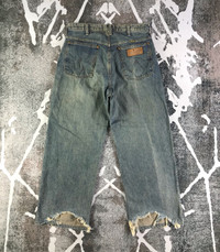 This is used item, please don't expected it to be like "new" or in "pristine" condition, Thank You. Measurements: Waist – Size 33 Shrink 32 inches Front Rise - 12.5 inches Hips - 44 inches Thigh - 26 inches Leg opening – 19 inches Inseam – 28 inches Waist : From the top button to the back belt loop / doubled Rise : From the crotch seam to the top of the waistband Hips: From edge to edge at the base of the zipper / doubled Thigh : From the crotch across to the outside of the leg / doubled Leg opening : From seam to seam / doubled Front Rise : From the crotch seam to the top of the waistband Inseam : From the crotch down the inner seam to the hem ***All measurements are taken when the jeans are laying flat Ship with DHL Express or Fedex ( 5-8 days to arrive depends the locations ) TRACKING NUMBER WILL BE GIVEN AFTER POSTAGE Looking for serious buyer only, Thanks for view and have a nice day!
