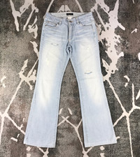 This is used item, please don't expected it to be like "new" or in "pristine" condition, Thank You. Measurements: Waist – 28 inches Front Rise - 9 inches Hips - 38 inches Thigh - 21 inches Leg opening – 19 inches Inseam – 32 inches Waist : From the top button to the back belt loop / doubled Rise : From the crotch seam to the top of the waistband Hips: From edge to edge at the base of the zipper / doubled Thigh : From the crotch across to the outside of the leg / doubled Leg opening : From seam to seam / doubled Front Rise : From the crotch seam to the top of the waistband Inseam : From the crotch down the inner seam to the hem ***All measurements are taken when the jeans are laying flat Ship with DHL Express ( 5-8 days to arrive depends the locations ) TRACKING NUMBER WILL BE GIVEN AFTER POSTAGE Looking for serious buyer only, Thanks for view and have a nice day!
