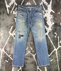 This is used item, please don't expected it to be like "new" or in "pristine" condition, Thank You. Measurements: Waist – 34 inches Front Rise - 10 inches Hips - 43 inches Thigh - 24 inches Leg opening – 15 inches Inseam – 32.5 inches Waist : From the top button to the back belt loop / doubled Rise : From the crotch seam to the top of the waistband Hips: From edge to edge at the base of the zipper / doubled Thigh : From the crotch across to the outside of the leg / doubled Leg opening : From seam to seam / doubled Front Rise : From the crotch seam to the top of the waistband Inseam : From the crotch down the inner seam to the hem ***All measurements are taken when the jeans are laying flat Ship with DHL Express ( 5-8 days to arrive depends the locations ) TRACKING NUMBER WILL BE GIVEN AFTER POSTAGE Looking for serious buyer only, Thanks for view and have a nice day!