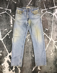 This is used item, please don't expected it to be like "new" or in "pristine" condition, Thank You. Measurements: Waist – Size 34 Manual 35 inches Front Rise - 12 inches Hips - 45 inches Thigh - 25 inches Leg opening – 16 inches Inseam – 33.5 inches Waist : From the top button to the back belt loop / doubled Rise : From the crotch seam to the top of the waistband Hips: From edge to edge at the base of the zipper / doubled Thigh : From the crotch across to the outside of the leg / doubled Leg opening : From seam to seam / doubled Front Rise : From the crotch seam to the top of the waistband Inseam : From the crotch down the inner seam to the hem ***All measurements are taken when the jeans are laying flat Ship with DHL Express ( 5-8 days to arrive depends the locations ) TRACKING NUMBER WILL BE GIVEN AFTER POSTAGE Looking for serious buyer only, Thanks for view and have a nice day!