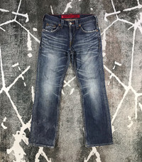 This is used item, please don't expected it to be like "new" or in "pristine" condition, Thank You. Measurements: Waist – Size 30 manual 33 inches Front Rise - 10 inches Hips - 40 inches Thigh - 21 inches Leg opening – 16 inches Inseam – 30 inches Waist : From the top button to the back belt loop / doubled Rise : From the crotch seam to the top of the waistband Hips: From edge to edge at the base of the zipper / doubled Thigh : From the crotch across to the outside of the leg / doubled Leg opening : From seam to seam / doubled Front Rise : From the crotch seam to the top of the waistband Inseam : From the crotch down the inner seam to the hem ***All measurements are taken when the jeans are laying flat Ship with DHL Express ( 5-8 days to arrive depends the locations ) TRACKING NUMBER WILL BE GIVEN AFTER POSTAGE Looking for serious buyer only, Thanks for view and have a nice day!
