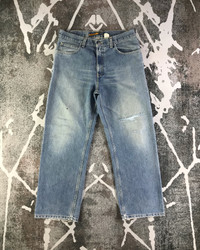 This is used item, please don't expected it to be like "new" or in "pristine" condition, Thank You. Measurements: Waist – Size 32 Manual 34 inches Front Rise - 11.5 inches Hips - 43 inches Thigh - 25 inches Leg opening – 18 inches Inseam – 29 inches Waist : From the top button to the back belt loop / doubled Rise : From the crotch seam to the top of the waistband Hips: From edge to edge at the base of the zipper / doubled Thigh : From the crotch across to the outside of the leg / doubled Leg opening : From seam to seam / doubled Front Rise : From the crotch seam to the top of the waistband Inseam : From the crotch down the inner seam to the hem ***All measurements are taken when the jeans are laying flat TRACKING NUMBER WILL BE GIVEN AFTER POSTAGE Looking for serious buyer only, Thanks for view and have a nice day!