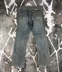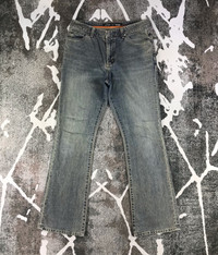 This is used item, please don't expected it to be like "new" or in "pristine" condition, Thank You. Measurements: Waist – 31 inches Front Rise - 10.5 inches Hips - 40 inches Thigh - 23 inches Leg opening – 19 inches Inseam – 31.5 inches Waist : From the top button to the back belt loop / doubled Rise : From the crotch seam to the top of the waistband Hips: From edge to edge at the base of the zipper / doubled Thigh : From the crotch across to the outside of the leg / doubled Leg opening : From seam to seam / doubled Front Rise : From the crotch seam to the top of the waistband Inseam : From the crotch down the inner seam to the hem ***All measurements are taken when the jeans are laying flat Ship with DHL Express ( 5-8 days to arrive depends the locations ) TRACKING NUMBER WILL BE GIVEN AFTER POSTAGE Looking for serious buyer only, Thanks for view and have a nice day!