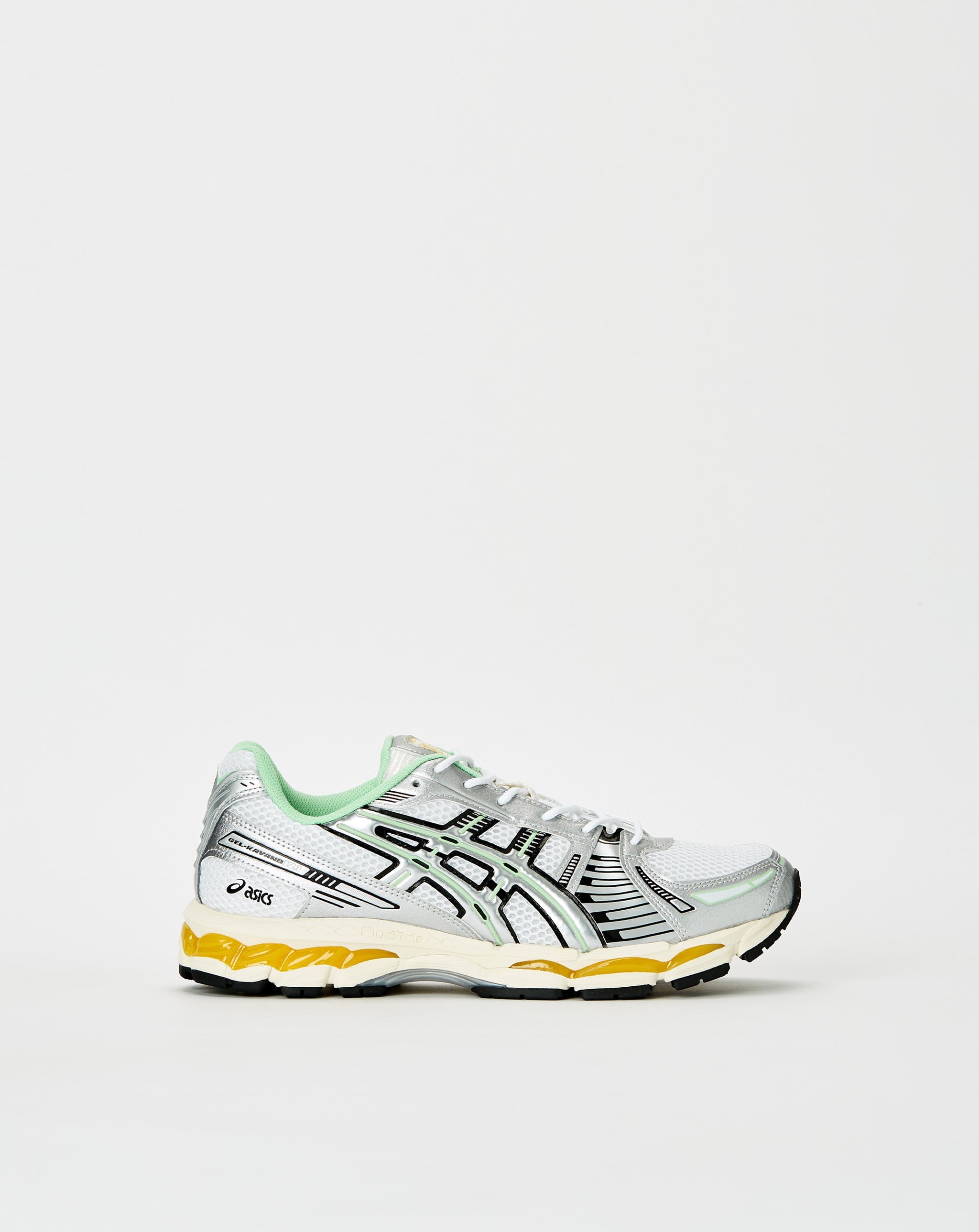 The asics GEL-KAYANO 12.1 sneakers fuse 2006 tech with a layered mesh build and retro heel branding for a bold, street-ready look. TRUSSTIC support, GEL midsoles, and memory foam deliver structure and comfort. - Personal Heel Fit memory foam at heel - Classic lace-up closure - Layered mesh upper with synthetic overlays - GEL technology on midsoles with EVA foam - AHAR rubber outsole - Style #: 1203A827-100 Product Details: • Listed in U.S. Men's Sizes. • Color: White | Menthol