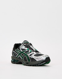 The asics GEL-NIMBUS 10.1 offers a smooth ride with GEL technology and dual-layer EVA foam midsole. With a breathable mesh upper and branded details, this shoe blends performance and street style. - Branding on the sides and tongue - Dual-layer EVA foam midsole - Lace-up closure - Mesh upper - Rubber outsole - Style #: 1203A543-022 Product Details: • Listed in U.S. Men's Sizes. • Color: Obsidian Grey | Green Basil