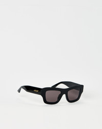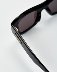 The Bottega Veneta Ultrathin Squared Sunglasses elevate style with a futuristic square shape and lightweight polyamide lenses. Discreet logo detailing adds subtle high-end flair. - Logo on the temples - Square silhouette - Polyamide with biobased content lenses - Acetate construction - Style #: BV1357S-001 Product Details: • Color: Black | Grey