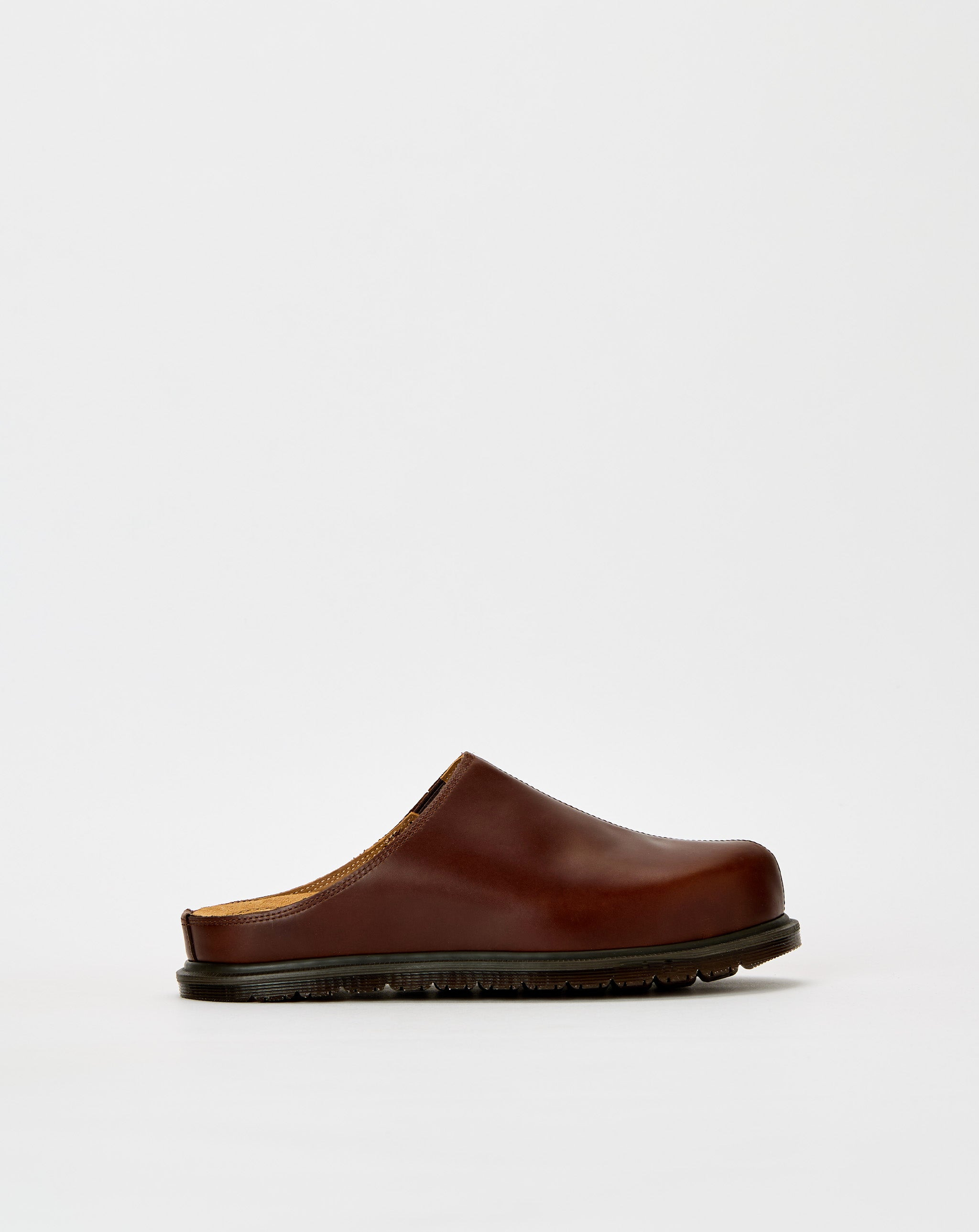 The Dr. Martens San Mule is a slip-on mule built with a 1990s-inspired San sole and smooth Orleans leather upper. Goodyear-welted construction gives it long-lasting structure with everyday edge. - Slip-on mule - 1990s-inspired "San" sole design - Goodyear-welted construction - Orleans leather upper - Style #: 41615200 Product Details: • Listed in U.S. Men's Sizes. • Color: Butterscotch