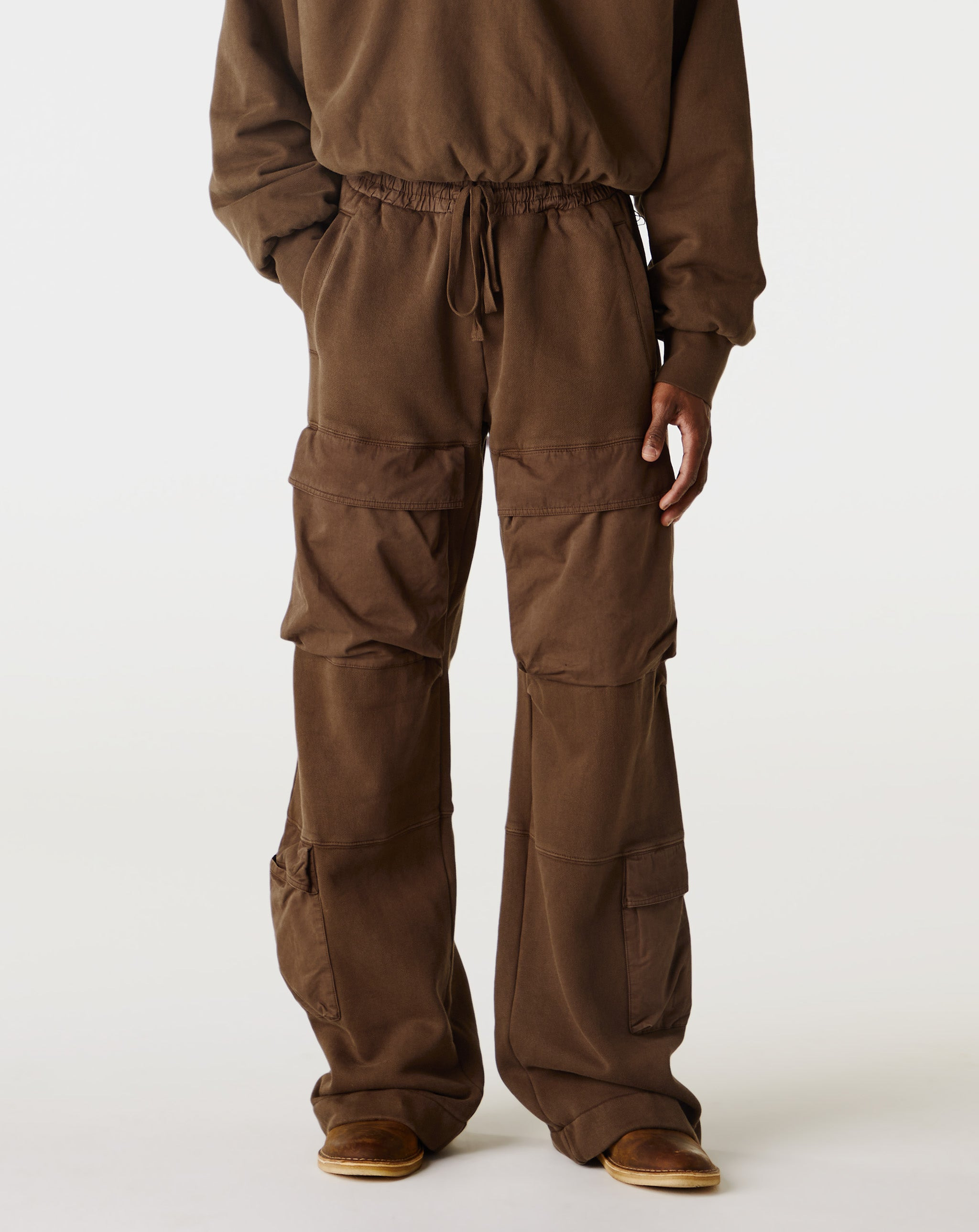 The Entire Studios Utility Sweatpants provide an elevated take on casual wear with their wide-leg cut and utilitarian cargo pockets. Crafted from organic cotton, these pants feature an elasticated waist with a cotton drawcord for a secure and customizable fit. Designed to blend functionality with a sleek street aesthetic. - Relaxed fit. - Utilitarian styling. - Panel detailing. - Elasticated waist with drawcord. - Multiple cargo pockets. - Side and back pockets. - Wide legs. - Model is 6’4”, wearing a size L. - Size L measures 31" at the waist and 37" at the inseam. - 100% Organic Cotton - Made in China. - Color: Brunette - Style #: ES2341BT