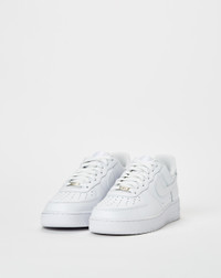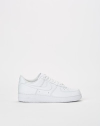 The radiance lives on in the Nike Air Force 1 ’07, the b-ball OG that puts a fresh spin on what you know best: durably stitched overlays, clean finishes and the perfect amount of flash to make you shine. - The stitched overlays on the upper add heritage style, durability and support. - Originally designed for performance hoops, the Nike Air cushioning adds lightweight, all-day comfort. - The low-cut silhouette adds a clean, streamlined look. - The padded collar feels soft and comfortable. - U.S. men's sizing. - Color: White | White | White | White. - Style #: CW2288-111