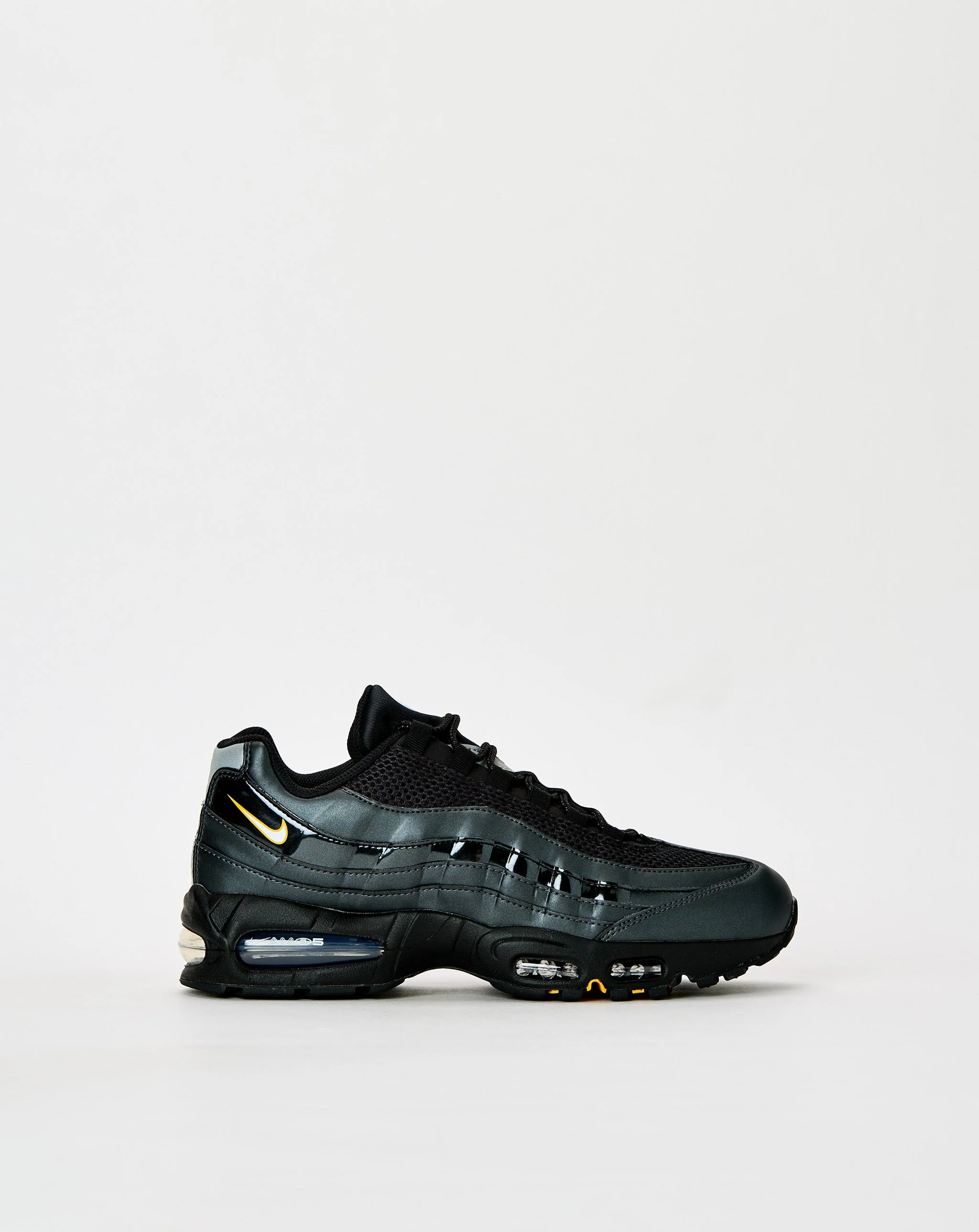 The Air Max 95 originally takes inspiration from human anatomy, leading to its distinctive wavy design. This version pairs mixed materials and visible Max Air cushioning for a layered look with unbelievable comfort. - Inspired by human anatomy, the midsole and outsole represent the spine while upper panels are the muscles and the laces are the shoe’s ribs. - Upper mixes synthetic leather and textiles for a layered look built to last. - Visible Max Air cushioning provides lightweight cushioning. - Flex grooves in the midsole/outsole let you move freely. - Style #: IB6830-001 Product Details: • Listed in U.S. Men's Sizes. • Color: Black | White | University Gold