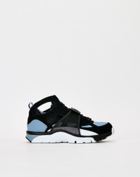 The Nike Air Trainer Huarache steps you into that legendary Huarache fit, a foot-hugging design that uses a cushioned inner sleeve and midfoot strap for extra comfort and support. Rich in details, this silhouette mixes real and synthetic leather with rugged textiles to create a textured upper. - Upper mixes real and synthetic leather with textiles for a layered look built to last. - Nike Air technology absorbs impact for cushioning with every step. - Cushioned inner sleeve creates a snug yet breathable fit. - Adjustable midfoot strap provides a supportive feel. - Style #: IH4470-001 Product Details: • Listed in U.S. Men's Sizes. • Color: Black | Cool Blue | White