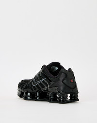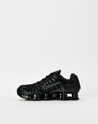 The Nike Shox TL takes mechanical cushioning to the next level. A recrafted version of the 2003 icon, it features breathable mesh in the upper and full-length Nike Shox technology for optimal impact absorption and a bold look on the streets. - Nike Shox technology combines resilient, flexible columns with moderator plates for outstanding cushioning that compresses and regains its shape. - A combination upper with a full TPU cage is a near-exact replica of the 2003 Nike Shox TL. - Molded overlays throughout the midfoot provide support and a snug fit. - A TPU plate in the heel between the midsole and Nike Shox technology helps provide lateral stability and support. - A foam midsole provides lightweight cushioning. - Non-marking, solid rubber in a modified waffle outsole gives great traction and durability. - Style #: AV3595-002 Product Details: • Listed in U.S. Men's Sizes. • Color: Black | Black | Metallic Hematite | Max Orange
