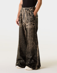 The DRKSHDW Geth Belas pants stand out with their coated, crinkled surface and easy drawstring waist. The wide-leg fit and dual back pockets complete the utilitarian look. - Relaxed fit - Wrinkled coated finish - Double back pockets - Elasticated drawstring waistband - Wide-leg design - Style #: DU02E7378-DWF-59 Product Details: • Model is 6'2", wearing a size L. • Size L measures 28" around the waist and 33.5" at the inseam. • 100% Cotton • Made in Italy. • Color: Black Washed Foil