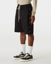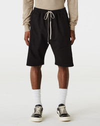 The Rick Owens DRKSHDW Pusher Shorts are tailored shorts with clean lines, tonal hardware, and a drawstring waistband. Side and back pockets deliver everyday utility with a refined DRKSHDW finish. - Regular fit - Elasticated waist with drawstring - Button closure on the sides - Side pockets - Back pockets - Style #: DU02E7373-TW-09 Product Details: • Model is 6'2", wearing a size L. • Size L measures 30" around the waist and 9" at the inseam. • 100% Cotton • Made in Italy. • Color: Black
