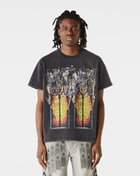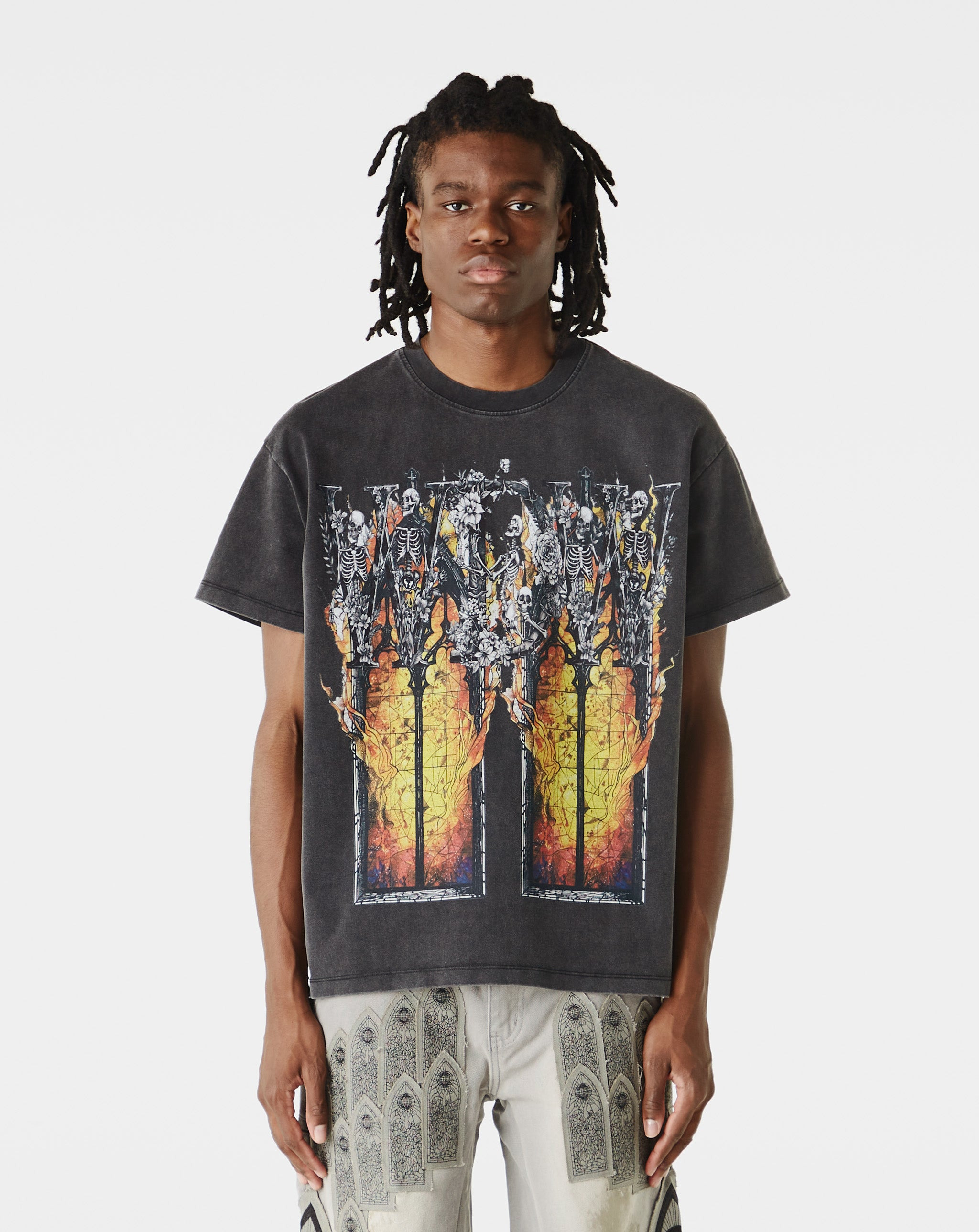 The Who Decides War Ember Chapel T-Shirt delivers vibrant front and back artwork on a clean crew neck silhouette. Crafted from cotton for comfort with a regular streetwear fit. - Regular fit - Multicolor graphic on the front and back - Classic crew neck - Style #: 1110190002SS25 Product Details: • Model is 6'2", wearing a size L. • Size L measures 22" from pit-to-pit and 27" from neck-to-hem. • 100% Cotton • Made in China. • Color: Coal