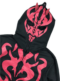 DARTH MAUL OVERPRINTED FULL ZIPPER HOODIES BY LOCK HEAVEN MADE IN CHINA ( JAPANESE MARKET ) SIZE ON TAG S ( FITS XS TO S ) Measure : CHEST : 19 INCHES LENGTH : 24 INCHES SHOULDER : 17 INCHES SLEEVE LENGTH : 26 INCHES HEM : 16 INCHES Condition: 9/10 Colour: 9/10 Please refer pictures 📌FOR CONDITIONING PLEASE REFER PICTURE , & OTHER IN GOOD CONDITION 🌟 ► All measurement are in INCHES. PLEASE READ WITH CARE BEFORE BUY Do not hesitate to contact me if you have any questions ● This is not a brand new product. ● All the details are in the photos. ● Any defects are as shown on the photos. ● Please expect few minor defects. ● Photos taken are genuine. No effect or editing is/was done. ● Color may be dissimilar due to sun/lighting. ● Please focus to details and measurement given. ● Make sure the measurement is balance with your wardrobe. RETURN POLICY Refund is applicable only to item that not match the description. Please check your size carefully because no refund can be made due to wrong size. Please send me a message if you have any question. SHIPPING AND CONDITIONS Accepted and most preferred payment is PAYPAL! For other payment methods contact me before buying! Your item will be shipped via FEDEX EXPRESS Tracking number will be given for free. Shipping cost includes handling and shipping cost Please contact me for any questions that you may have about this item and our transaction! If you have any problems during or after the transaction contact me first, without opening a case or leaving negative feedback, and it will be solved. Thanks for looking!