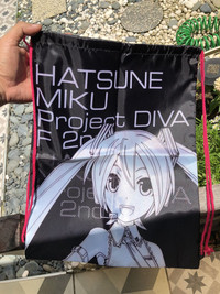 AUTHENTIC HATSUNE MIKU : PROJECT DIVA F 2ND 2014 DRAWSTRING BAG BY SEGA / CRYPTON FUTURE MEDIA MADE IN JAPAN SIZE ON TAG ( ONE SIZE ) Dimension : 17.5 INCHES x 13.5 INCHES Condition: 9/10 Colour: 9/10 NO DEFECTS AT ALL EXCELLENT CONDITIONS PLEASE REFER PICTURES ► All measurement are in INCHES. PLEASE READ WITH CARE BEFORE BUY Do not hesitate to contact me if you have any questions ● This is not a brand new product. ● All the details are in the photos. ● Any defects are as shown on the photos. ● Please expect few minor defects. ● Photos taken are genuine. No effect or editing is/was done. ● Color may be dissimilar due to sun/lighting. ● Please focus to details and measurement given. ● Make sure the measurement is balance with your wardrobe. RETURN POLICY Refund is applicable only to item that not match the description. Please check your size carefully because no refund can be made due to wrong size. Please send me a message if you have any question. SHIPPING AND CONDITIONS Accepted and most preferred payment is PAYPAL! For other payment methods contact me before buying! Your item will be shipped via FEDEX EXPRESS Tracking number will be given for free. Shipping cost includes handling and shipping cost Please contact me for any questions that you may have about this item and our transaction! If you have any problems during or after the transaction contact me first, without opening a case or leaving negative feedback, and it will be solved. Thanks for looking!