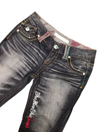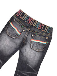 AUTHENTIC BMB BLUE MOON BLUE JEANS EMBROIDERY DESIGN MADE IN CHINA ( JAPANESE MARKET ) SIZE ON TAG ( 27 ) MANUAL 30 INCHES Dimension: Length : 39 Inches Waist : 30 Inches Inseam : 30 Inches Leg Opening : 8 Inches Front Rise : 7.5 Inches Thigh : 10.5 Inches Knee : - Inches Condition: 9/10 Colour: 9/10 CONDITIONS PLEASE SEE PICTURES ► All measurement are in INCHES. PLEASE READ WITH CARE BEFORE BUY Do not hesitate to contact me if you have any questions ● This is not a brand new product. ● All the details are in the photos. ● Any defects are as shown on the photos. ● Please expect few minor defects. ● Photos taken are genuine. No effect or editing is/was done. ● Color may be dissimilar due to sun/lighting. ● Please focus to details and measurement given. ● Make sure the measurement is balance with your wardrobe. RETURN POLICY Refund is applicable only to item that not match the description. Please check your size carefully because no refund can be made due to wrong size. Please send me a message if you have any question. SHIPPING AND CONDITIONS Accepted and most preferred payment is PAYPAL! For other payment methods contact me before buying! Your item will be shipped via FEDEX EXPRESS Tracking number will be given for free. Shipping cost includes handling and shipping cost Please contact me for any questions that you may have about this item and our transaction! If you have any problems during or after the transaction contact me first, without opening a case or leaving negative feedback, and it will be solved. Thanks for looking!