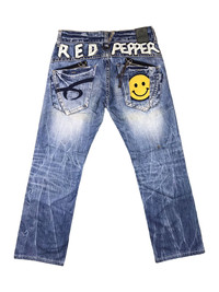 AUTHENTIC RED PEPPER SMILE JEANS MADE IN CHINA ( JAPANESE BRAND ) SIZE ON TAG ( 30 ) MANUAL 34 INCHES Dimension: Length : 39 Inches Waist : 34 Inches Inseam : 28.5 Inches Leg Opening : 8.5 Inches Front Rise : 9.5 Inches Thigh : 11 Inches Knee : - Inches Condition: 9/10 Colour: 9/10 CONDITIONS PLEASE SEE PICTURES ► All measurement are in INCHES. PLEASE READ WITH CARE BEFORE BUY Do not hesitate to contact me if you have any questions ● This is not a brand new product. ● All the details are in the photos. ● Any defects are as shown on the photos. ● Please expect few minor defects. ● Photos taken are genuine. No effect or editing is/was done. ● Color may be dissimilar due to sun/lighting. ● Please focus to details and measurement given. ● Make sure the measurement is balance with your wardrobe. RETURN POLICY Refund is applicable only to item that not match the description. Please check your size carefully because no refund can be made due to wrong size. Please send me a message if you have any question. SHIPPING AND CONDITIONS Accepted and most preferred payment is PAYPAL! For other payment methods contact me before buying! Your item will be shipped via FEDEX EXPRESS Tracking number will be given for free. Shipping cost includes handling and shipping cost Please contact me for any questions that you may have about this item and our transaction! If you have any problems during or after the transaction contact me first, without opening a case or leaving negative feedback, and it will be solved. Thanks for looking!