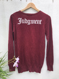 MOUSSY JUDGEMENT SKULLS LONG SLEEVE MADE IN CHINA 52% ACRYLIC / 48% COTTON Sizes On Tag FREE ( M ) Measure : CHEST : 18 INCHES LENGTH : 28 INCHES SHOULDER : 14.5 INCHES SLEEVE LENGTH : 26.5 INCHES HEM : - INCHES Condition: 9/10 Colour: 9/10 Kindly refer pictures for condition 📌 NO HOLES ,NO STAINS & OTHER IN GOOD CONDITIONS 🌟🌟🌟🌟🌟 ► All measurement are in INCHES. PLEASE READ WITH CARE BEFORE BUY Do not hesitate to contact me if you have any questions ● This is not a brand new product. ● All the details are in the photos. ● Any defects are as shown on the photos. ● Please expect few minor defects. ● Photos taken are genuine. No effect or editing is/was done. ● Color may be dissimilar due to sun/lighting. ● Please focus to details and measurement given. ● Make sure the measurement is balance with your wardrobe. RETURN POLICY Refund is applicable only to item that not match the description. Please check your size carefully because no refund can be made due to wrong size. Please send me a message if you have any question. SHIPPING AND CONDITIONS Accepted and most preferred payment is PAYPAL! For other payment methods contact me before buying! Your item will be shipped via FEDEX EXPRESS Tracking number will be given for free. Shipping cost includes handling and shipping cost Please contact me for any questions that you may have about this item and our transaction! If you have any problems during or after the transaction contact me first, without opening a case or leaving negative feedback, and it will be solved. Thanks for looking!