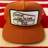 Supreme — Coffin Cradle to Grave Cap 5 panel hat trucker snapback Condition: 9.75/10, extremely light worn, 0 flaws - essentially pass as deadstock Color: Orange Size: Adjustable, snapback Additional info: S/S15 release, released everywhere except the online shop for US/Canada. 100% authentic! Packages are shipped via Canada Post within 48 hours, including on weekends/holidays. ALWAYS open to offers! Hit my DM to talk or purchase 📲