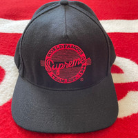 Supreme — College Circle Logo 5 panel cap hat snapback F/W08 Condition: 8.5/10, lightly worn, some wrinkling on the canvas, the smartie has rusted so there is tape over it so it won’t scratch your head Color: Black/red Size: One Size, snapback — fits most Additional info: Relatively rare 100% authentic! Packages are shipped via Canada Post within 48 hours, including on weekends/holidays. ALWAYS open to offers! Hit my DM to talk or purchase 📲