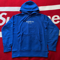 Supreme — Classic Logo Hoodie Hooded Sweatshirt 2015 Condition: 10/10 overall - 100% DEADSTOCK. Color: Blue Size: Medium Additional info: An absolute classic Supreme hoodie (no pun intended lol). A really cool logo in my opinion. This blue is a cool and vibrant color too! 100% authentic! Shipped via Canada Post within 48 hours, regardless if purchased on a weekday or the weekend. Additional photos are always available upon request. ALWAYS open to offers! Hit my DM to talk or purchase 📲