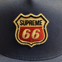 Supreme — Route 66 Side Vent Mesh 5 Panel Cap Snapback Hat F/W 2012 Condition: 9.5/10, extremely lightly used overall, there's small stains pointed out with the green arrows. They are essentially impossible to see in person. Please note that anything that is white but looks yellow is because of the artificial lamp. Color: Blue Size: One Size, snapback — fits most Additional info: Rip-off of the “Phillips Route 66” sign / logo. 100% authentic! Packages are shipped via Canada Post within 48 hours, including on weekends/holidays. ALWAYS open to offers! Hit my DM to talk or purchase 📲