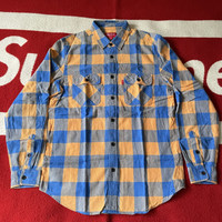 Supreme - Plaid Flannel Shirt - Blue, Orange & Gray 2000's