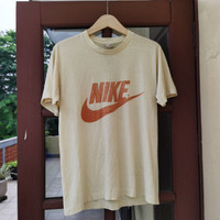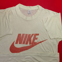 Nike swoosh shirt Early 1980s Still using Screen stars tag. Size L (21.26 x 25.98) Minor flaws: stain ( almost unnoticed) Fix able pinhole near arm ❗❕❗❕ Please Read ❗❕❗❕ now We only using DHL or EMS , cost only USD 15, Worldwide , tracking is available , handling to Post office within a day , max 1 day. Shipping worldwide takes 4-7 working days . Tracking number is available Because Sales are final, im more than happy if buyer need more photo angle or information regarding the shirts before buyer purchased the shirt. Accepting any kind of offer. Just hit me up ,🔊 If you like the shirt , Do not hesitate to binding offer, I will try my best to meet the offer. 🫱🫲🤝 I am a non-smoker and remains in a smoke-free home stored. Last but not least please kindly Follow my page , its free 👀✌️🤝