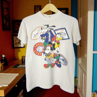 Vintage Mickey Unlimited 80s Faded tag ( The tag faded because I washed the shirt with kids’ shampoo, but I still have the photo from before it faded.) single stitched Made in Canada Size S measurement pit to pit 18.5" x length 24" Condition 9/10 , excellent, fade white color, great vintage look. ❗❕❗❕ Please Read ❗❕❗❕ Shirts measured flat. Make an offer—I’m flexible! 😎 Shipping worldwide for $15 via DHL/EMS. Tracking included, usually ships in 1 day. 7-10 days delivery. All sales final, so ask for pics or details before buying. Smoke-free home, no smoking here! 🚭 Follow my page—it’s free! ✌️