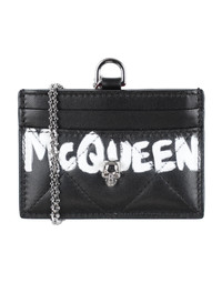 Mcqueen Graffiti Card Holder With Chain in Black/white
