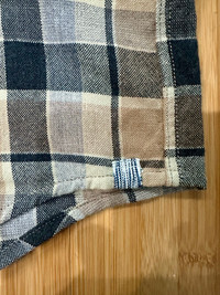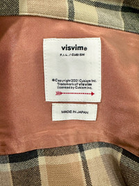 0125105011029 Size 1, Beige 89% Wool 11% Linen + custom water buffalo buttons Brand new condition, only tried on Purchase includes shirt, tags, and bag Good luck finding another Such a versatile combination of colors, may be visvim’s best check shirt to date.