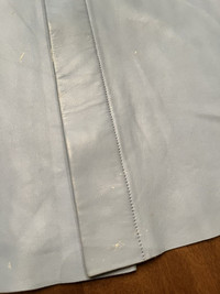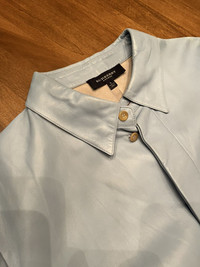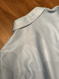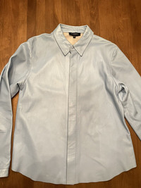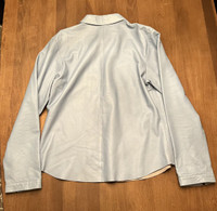 Leather Burberry shirt in size large but I’d say it’s best on someone s size medium as it has being altered professionally on the sides with 2 cm on both sides. The shirts has some Flaws as such scratches. Please see photos attached carefully. Finale Sale.