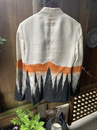 Stunning blazer, One of a kind which means you’ll be the only one wearing this blazer. Linen fabric, with black satin lining for a soft touch. Hand painted.