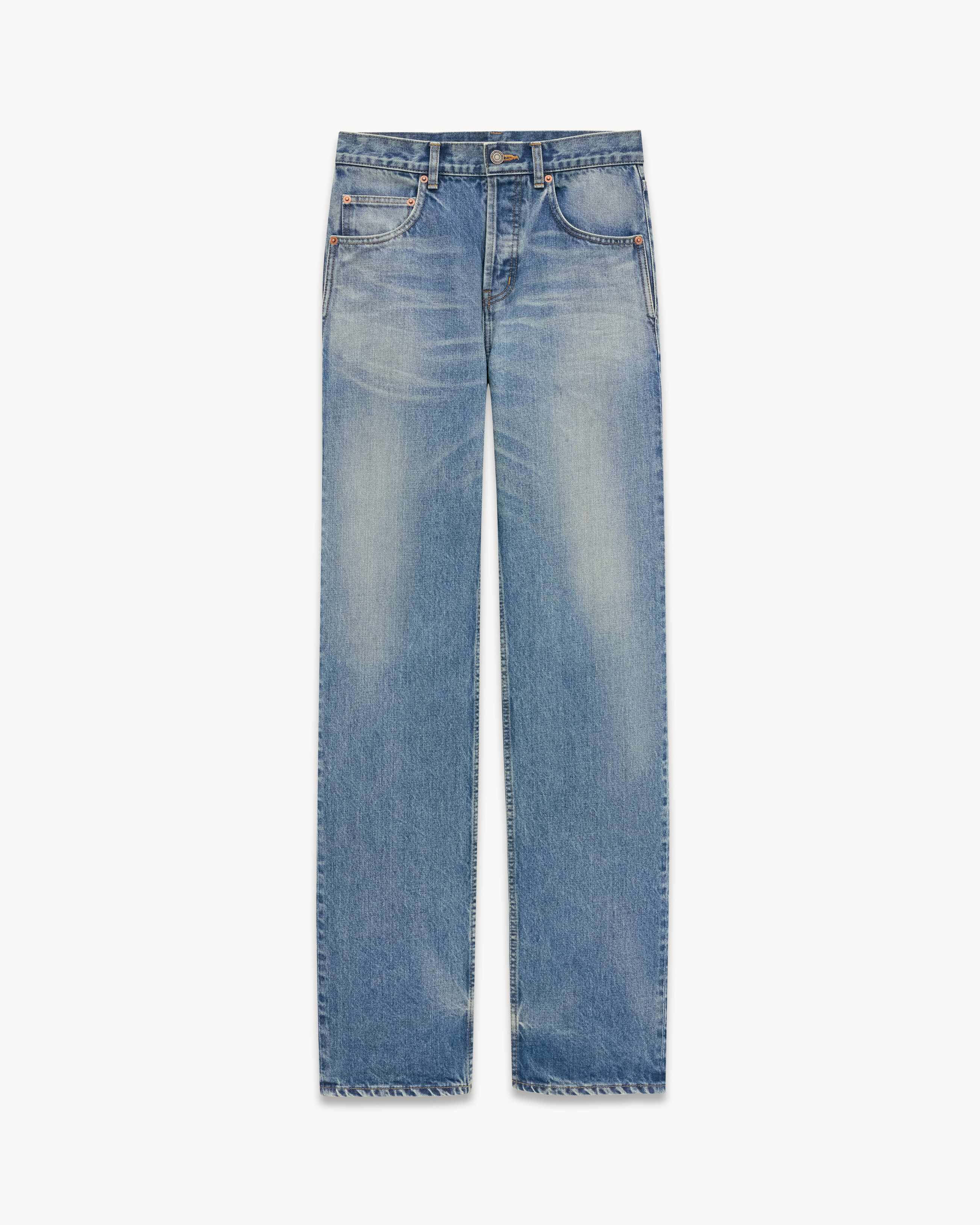 MID-RISE FIVE-POCKET JEANS, FEATURING A STRAIGHT LEG WITH A BAGGY FIT AND BUTTON FLY. - 100% COTTON - BUTTON CLOSURE WITH BUTTON FLY - FIVE-POCKET JEANS - WAISTBAND WITH BELT LOOPS - SAINT LAURENT JACRON - STYLE ID 795394Y13KD4423 - MADE IN JAPAN