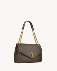 SAINT LAURENT'S NEW SIGNATURE ENVELOPE BAG. MADE OF FINE-GRAINED LEATHER WITH PADDED QUILTING. THIS LARGE VERSION IS ELEVATED BY A SLIDING CURB CHAIN. SOFT AND SPACIOUS, IT IS THE IDEAL SIZE FOR EVERYDAY USE. - GROSGRAIN LINING - BRONZE-TONED HARDWARE - SNAP-BUTTON CLOSURE - ONE INTERIOR ZIP POCKET - DIMENSIONS: 28 X 22 X 12 CM / 11" X 8.7" X 4.7" - STRAP DROP: 43 CM / 16.9" - LAMBSKIN, BRASS - STYLE ID 777399AACYT3212 - MADE IN ITALY
